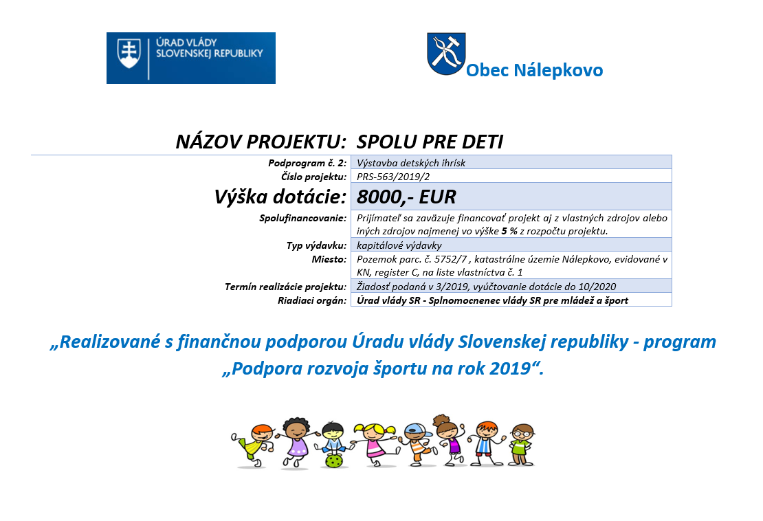 Environmentálny fond (Obec Nálepkovo získala grant vo výške 21 720,-- Eur pre ZŠ s MŠ Nálepkovo (spolufinancovanie 217,20 Eur)